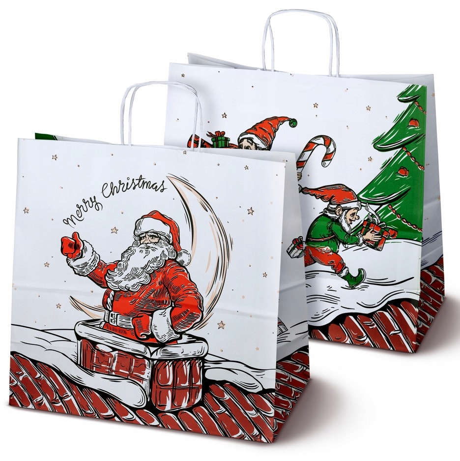 РІЗДВЯНИЙ ПАПЕРОВИЙ МІШЕК 40x18x39 см ДЛЯ ПОДАРУНКІВ НА ДЕНЬ ДІДА ДІДА Набір 50 шт.