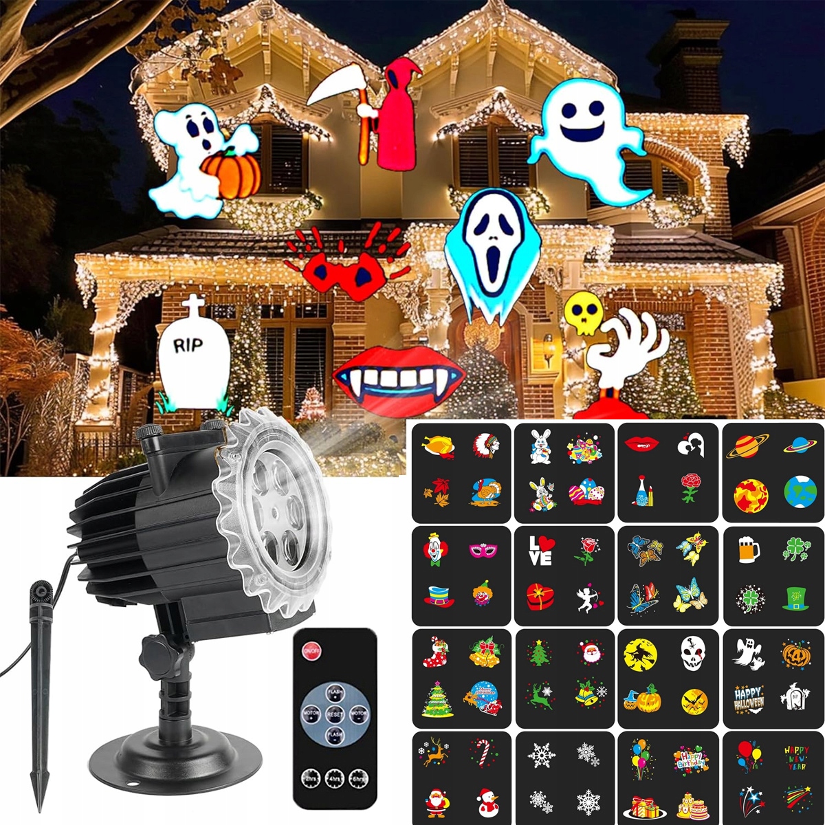 ⭐️Різдвяний проектор з дистанційним керуванням, світлодіодний проектор з ефектом сніжинки на Хелловін, 16 слайдів із 64 різними візерунками для прикраси саду та інтер'єру.⭐️