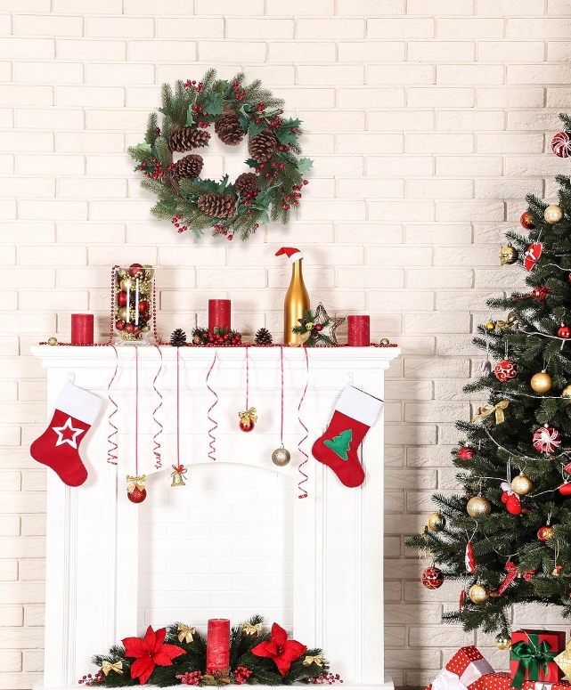 【Різдвяні прикраси】 Різдвяний вінок для вхідних дверей також можна повісити на стіни в кімнаті та використовувати як прикрасу вікна, обіднього столу чи каміна. Наш різдвяний вінок для приміщень також можна розмістити в приміщеннях, таких як коридори, сходи та вітальні, щоб доповнити внутрішні та зовнішні прикраси та створити ефект цілісного різдвяного декору та забезпечити незабутнє Різдво з вашою родиною.