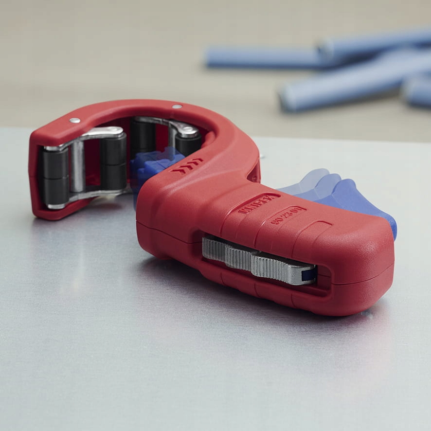різак для обрізки та чарівності пластикових дренажних труб. Ви можете попередньо встановити три діаметри з міцним металевим повзунком. Для різання труб, стійких до високих температур та багатьох інших пластикових труб діаметром 32, 40 або 50 мм та товщиною стінки до 2,4 мм. Відмінні труби та легке вирізання завдяки ковзаючим підшипникам та самостійним свинцевим роликом. Легке позиціонування завдяки хорошій видимості точки різання. Пружинне різання для різання труби не потребує постійного перемикання під час різання. Змінне лезо з двома різними краївами може бути зворотним у випадку ознак зносу та замінено без використання інструментів. Можливість повторного або точного вирізання з довжини близько 10 мм. Корпус різака труби виготовлений з пластику, армованого скляним волокном.