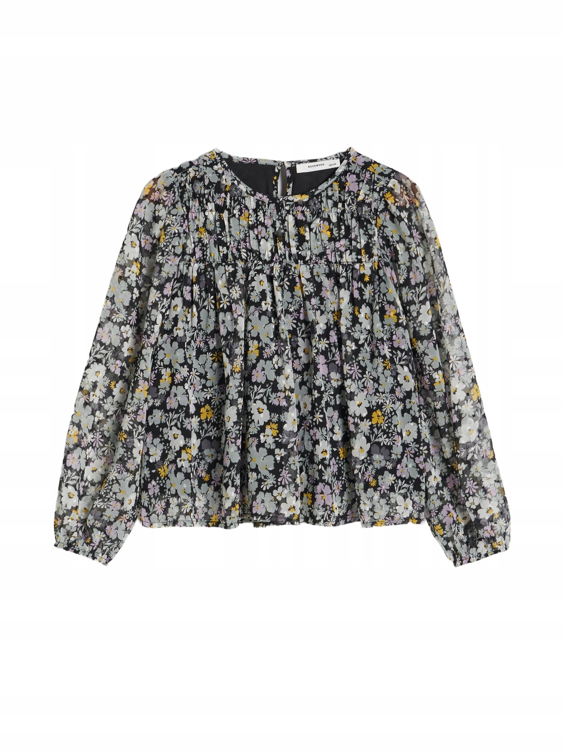 РІЗНОКОЛЬОРОВА ШИФОНОВА БЛУЗА З ВІЗЕРКУНКОМ З КВІТАМИ ДОВГИЙ РУКАВ 122