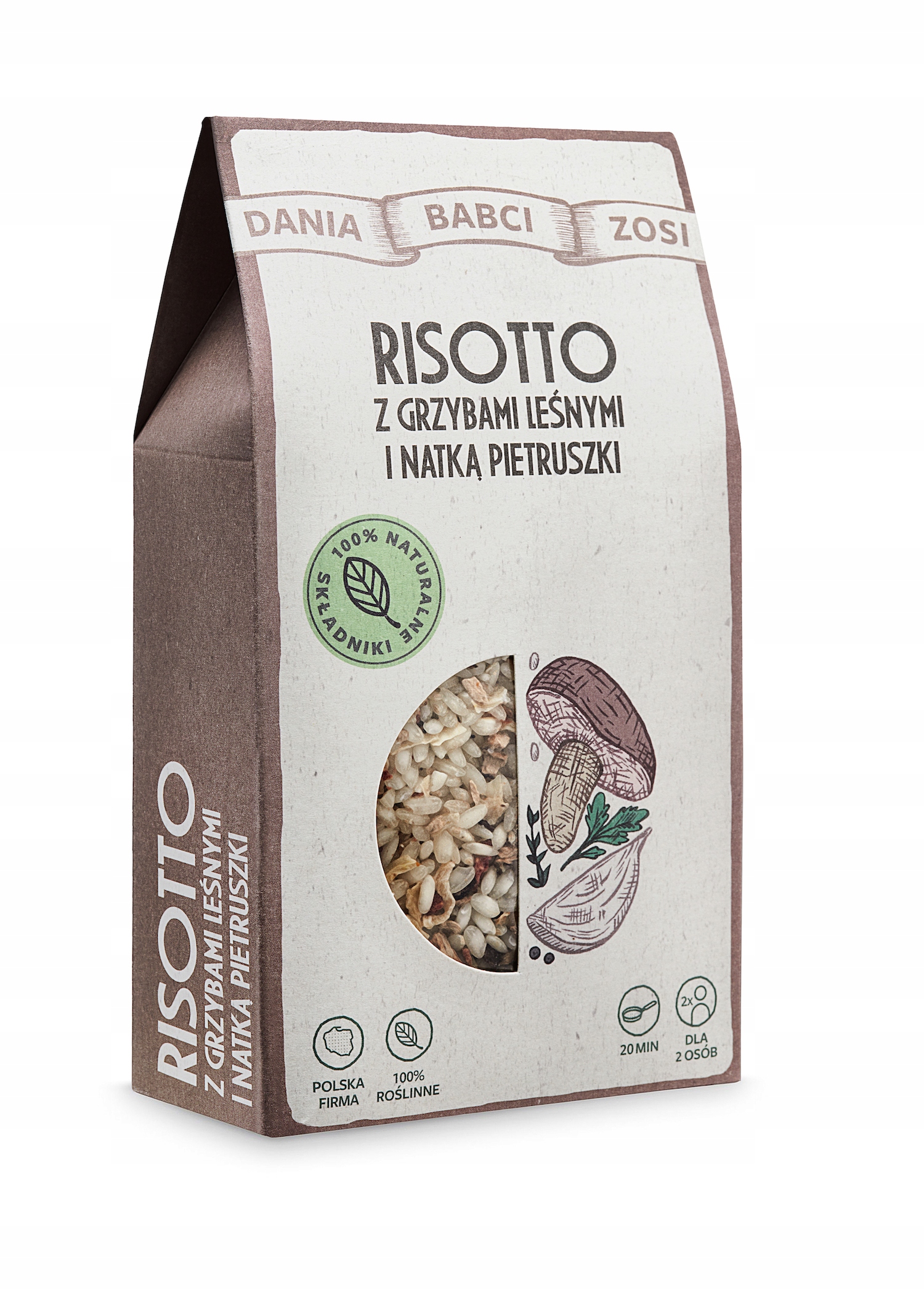 Різотто з лісовими грибами та петрушкою – ще одна новинка для шанувальників страв від бабусі Зосі. Цього разу основою страви став смачний та ситний рис. Композиція з рису, лісових грибів і петрушки в густому соусі. Різотто від бабусі Зосі – це поживна, ситна та смачна страва. Різотто, приготованого на сковороді за 20 хвилин, вистачить на дві повні порції.