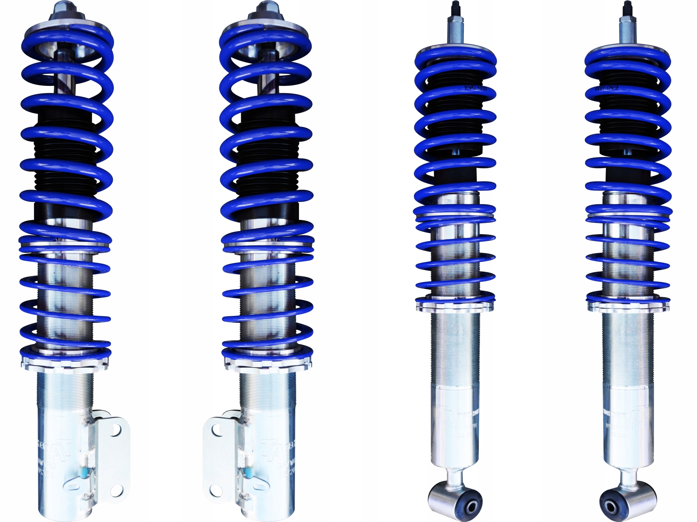 В набір входять 4 різьбові амортизатори, 4 спортивні пружини, ключ регулювання висоти та сертифікат TUV