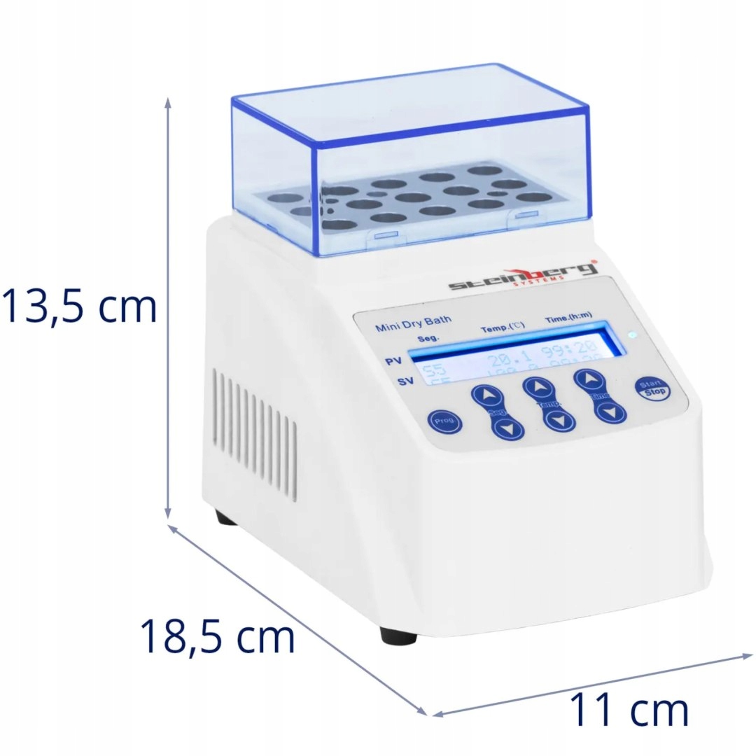 Лабораторні ванни Steinberg Systems забезпечують рівномірний, точний та повторюваний контроль температури без використання води або пари. Він ідеально підходить для різних типів експериментів та заходів, таких як очищення, сушіння та підготовка зразків, ампліфікація ДНК або полімеризація пластмас. Пристрій був розроблений для професійних лабораторних потреб. Це гарантує менший ризик забруднення вибірки, високої енергоефективності, всебічного використання та простої роботи. Крім того, гладка, непорційна поверхня дозволяє легко очистити та дезінфікувати. Діапазон температури від 5 ° С вище кімнатної температури до 100 ° C з роздільною здатністю 0,1 ° C точно встановлено за допомогою світлодіодного світлодіодного дисплея 64 х 15 см . Точність ванни до 0,5 ° C , час нагріву 30 хв, тепло рівномірно складається, що забезпечує оптимальні та повторювані умови. Інтуїтивний дисплей дозволяє зберегти режими роботи, встановлювати автоматичні послідовності програм або використовувати таймер від 1 хв до 99 годин. 59 хв . Завдяки компактним розмірам пристрій можна розмістити де завгодно, оскільки він не займає багато місця. База характеризується економічною експлуатацією, в потужності 60 Вт працює набагато економічніше, ніж інші пристрої опалення.