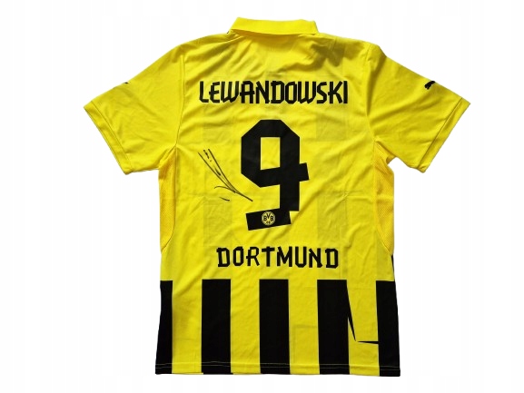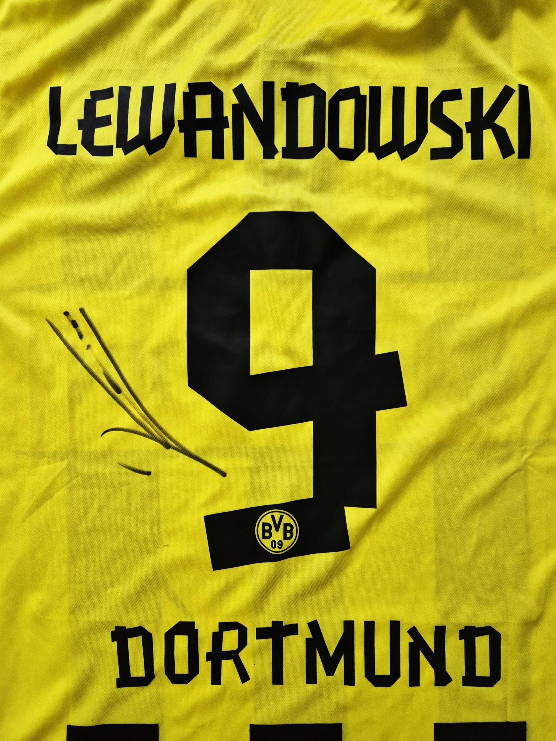 Роберт Левандовський t -сорочка Борусія Dortmund ретро -автограф + сертифікат