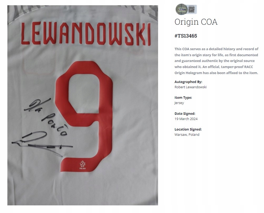 ROBERT LEWANDOWSKI Польська футболка з ОРИГІНАЛЬНИМ АВТОГРАФОМ + СЕРТИФІКАТ