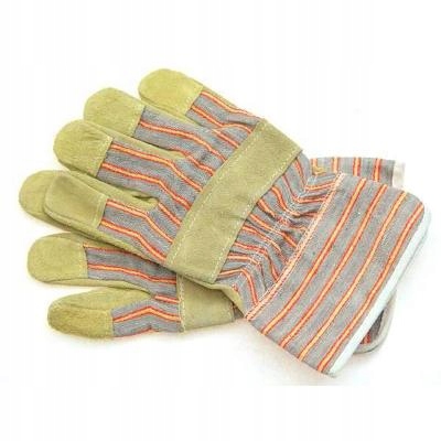 Захисні рукавички, посилені жовтою коров'ячою шкірою. Денім з різнокольоровими смугами. Рукоятка на всю руку - частина захоплення виготовлена з цільного шматка шкіри, що робить її більш міцною та стійкою до стирання. Популярно використовується для механічних робіт.