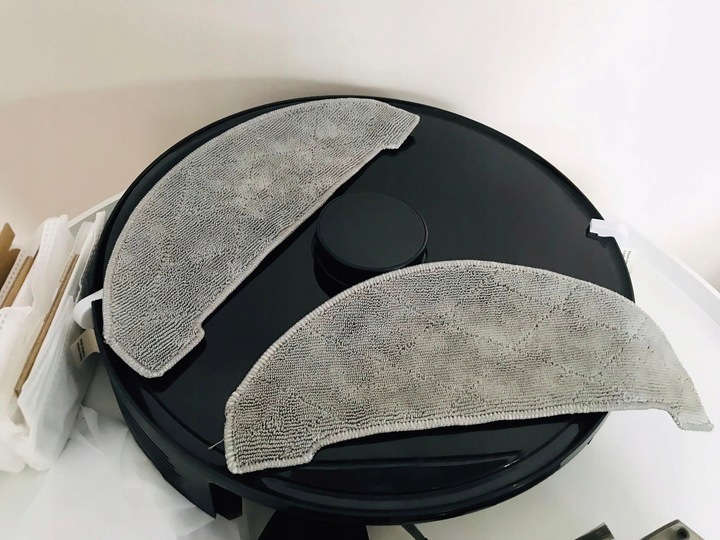 Продукт має незначні звичайні сліди використання. Всередині одного з мішків бруд (цей мішок поміщається в станцію автоматичного спорожнення). Відірваний шматок гуми від бака для води (фото № 4) - це ніяк не впливає на використання товару). Посібник користувача англійською мовою. Упаковка трохи пошкоджена. Комплект повністю укомплектований. Апарат перевірений - комплект технічно справний. Бруд на одній із двох ганчірок для швабри. Вміст набору показано на всіх реальних фотографіях, крім першої ілюстративної фотографії. 5 пакетів нові, але в одному є сліди використання. Стан набору дуже хороший.