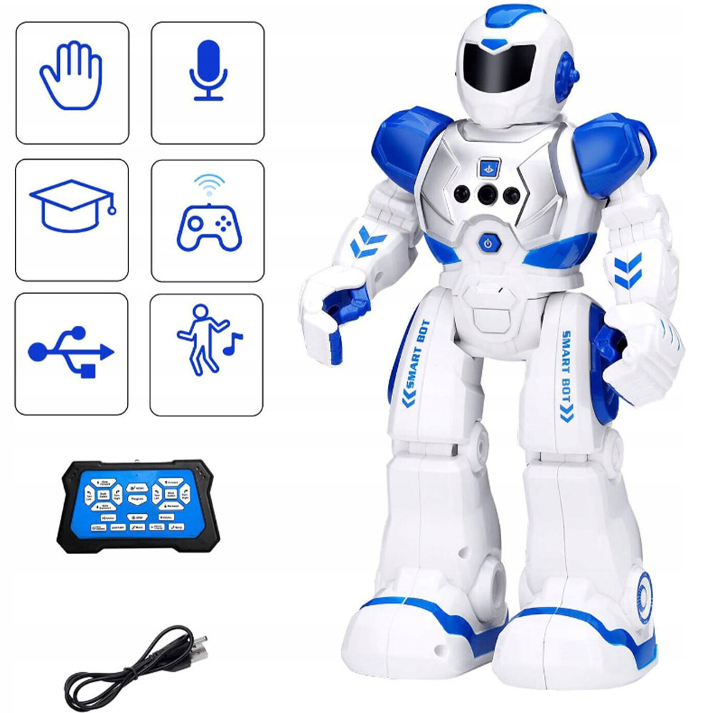 Цей робот із дистанційним керуванням виготовлений із нешкідливого ABS-пластику та створений для безпечної гри. Його гнучкі суглоби (на плечах, ліктях і великих пальцях) і міцні колеса дозволяють йому робити всі види крутих рухів. Завдяки різноманітним функціям і чарівному голосу, цей робот із інфрачервоним керуванням стане захоплюючим подарунком на будь-яке свято!