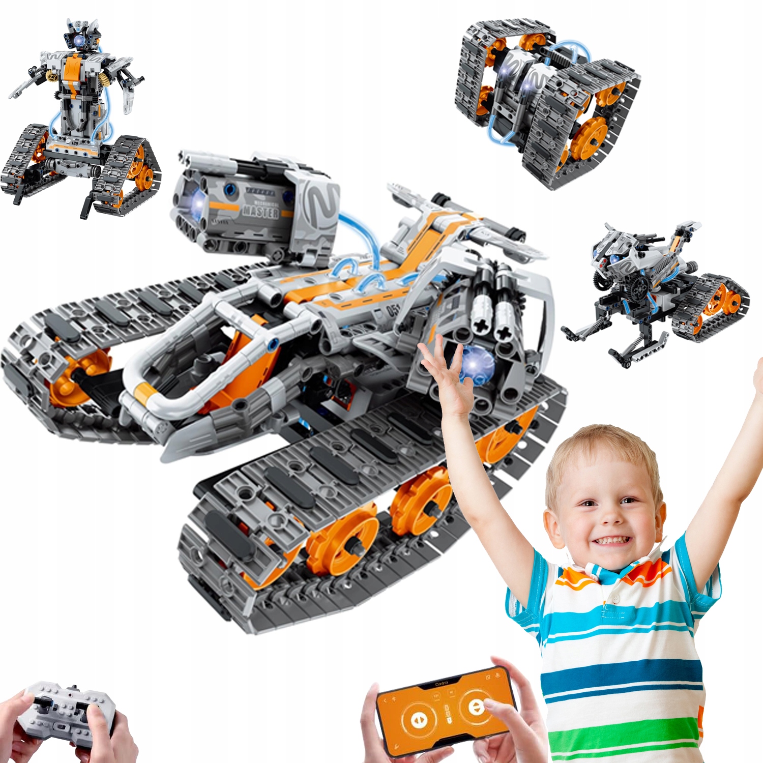 im. Master 8051 4 в 1 дистанційному контрольованому технічному будівництві іграшка з світлодіодним освітленням, нанесенням та дистанційним керуванням, набором будівельних автомобілів роботів, 724 елементів, подарунок для дітей віком від 6-12 років, хлопчиків та дівчат