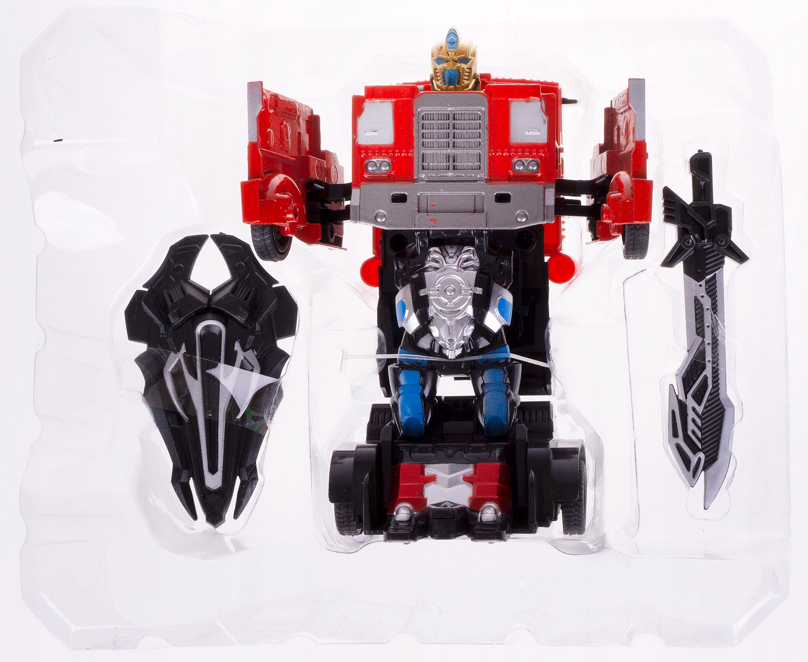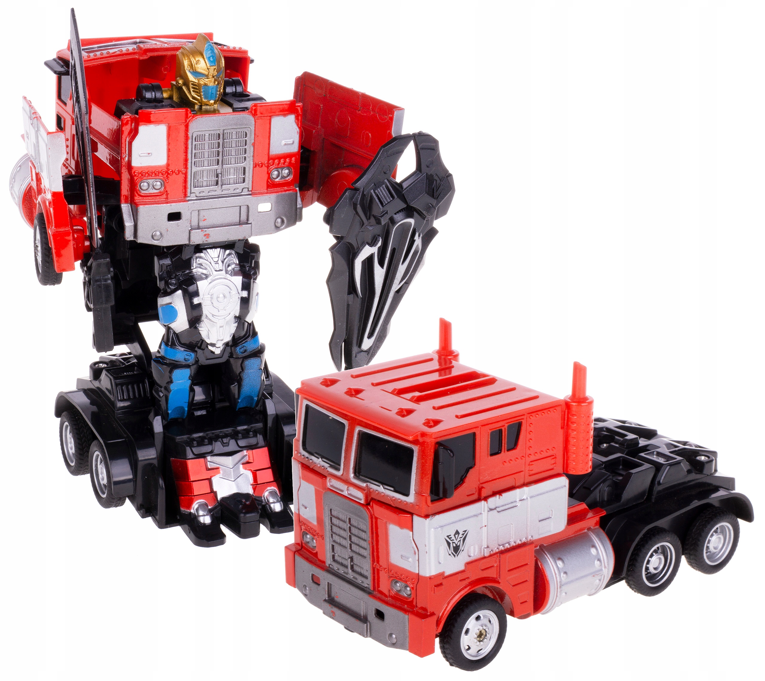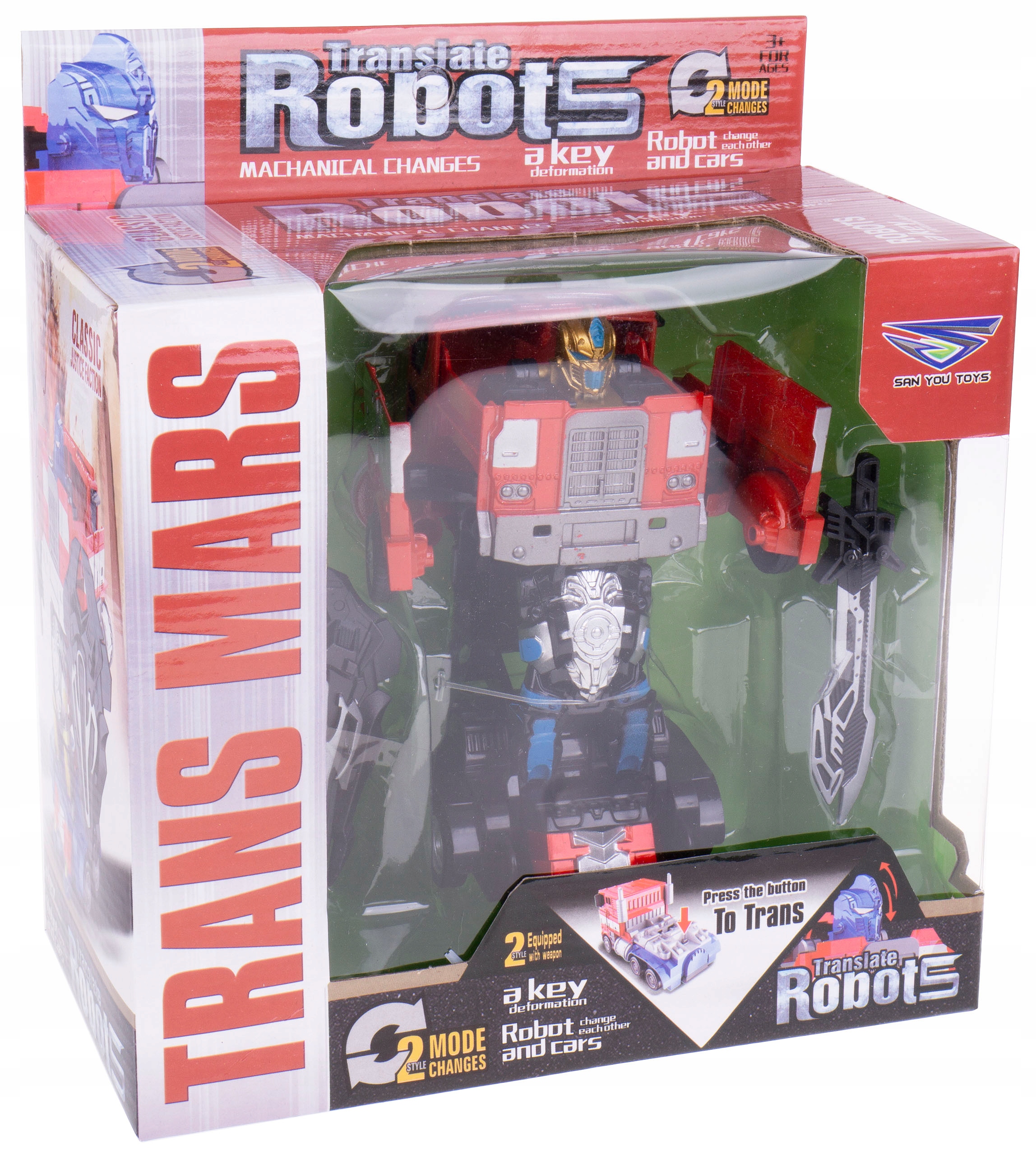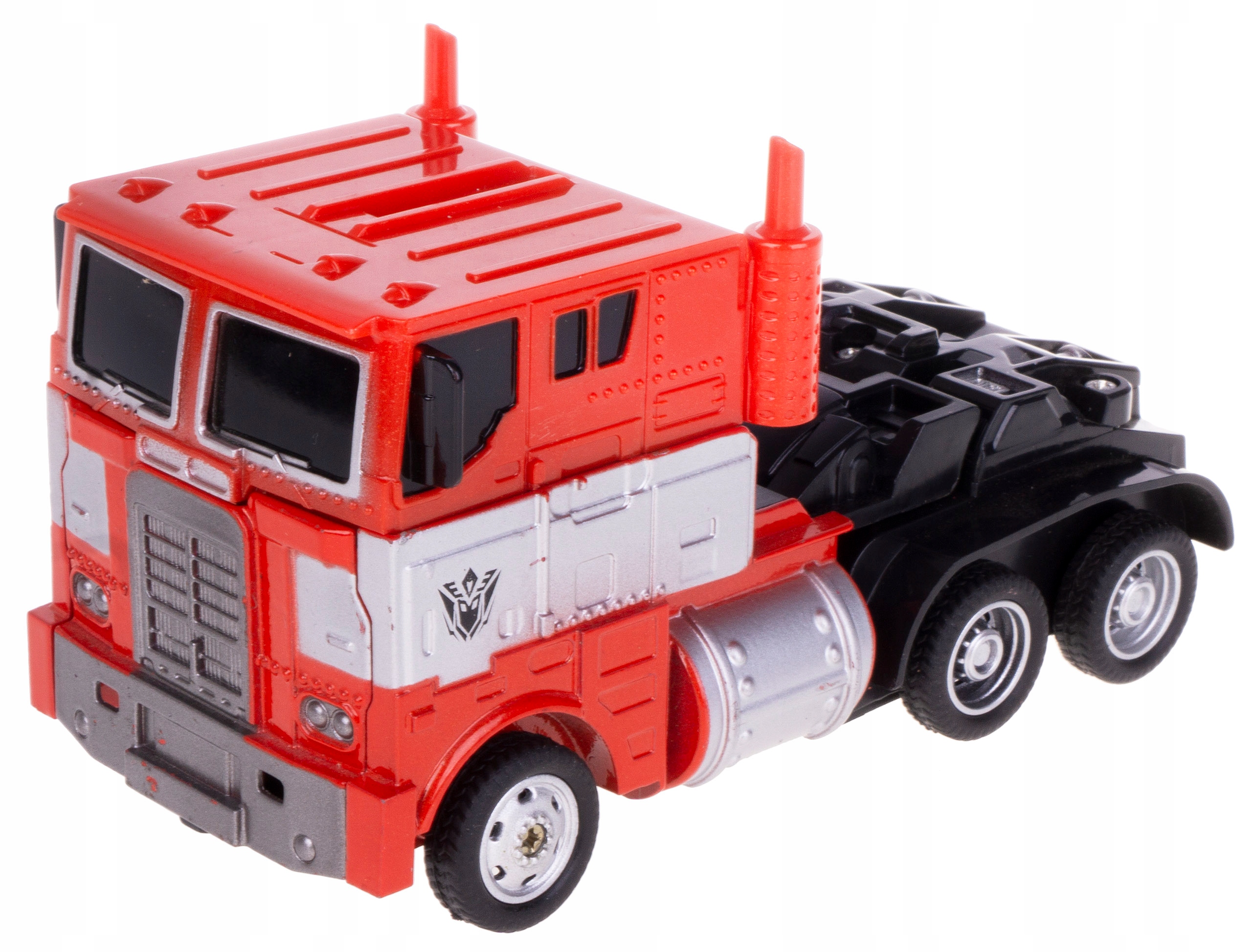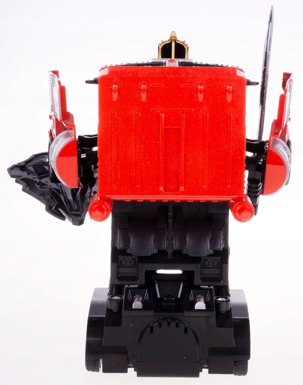 Фігурка робота перетворюється на вантажівку автоматично однією кнопкою. розташований у кінці моделі, щоб повернутися до версії вантажівки, просто опустіть передню частину ще нижче.