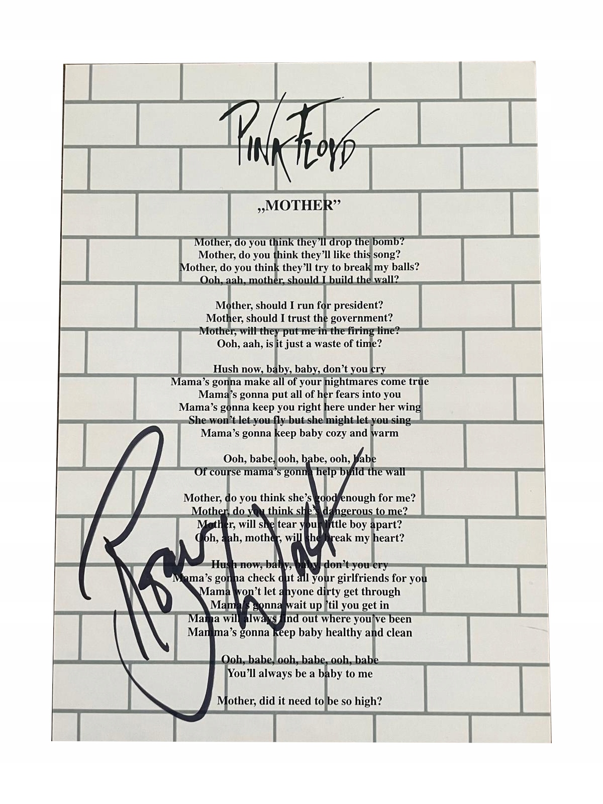 Роджер Вотерс (Pink Floyd) текст для «Mother» з оригінальним автографом