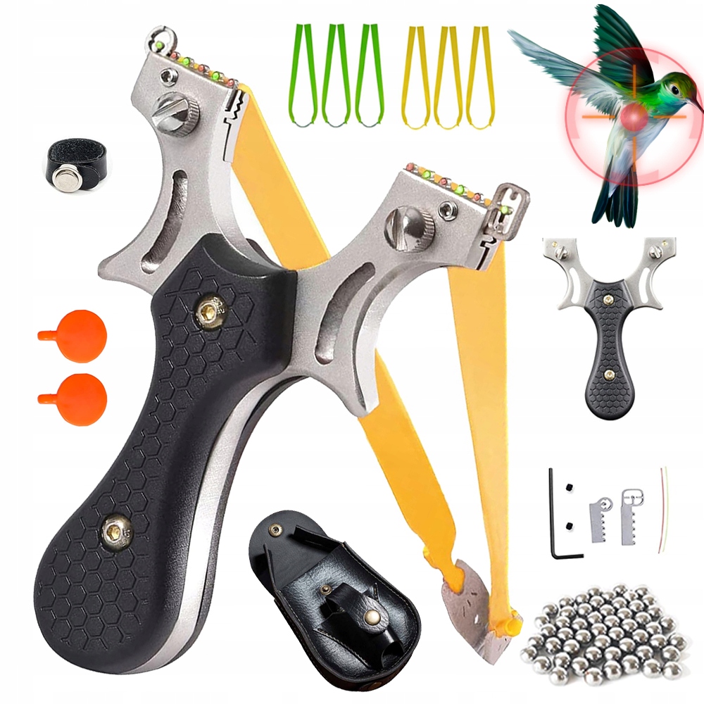РОГАТКА З ПРИЦІЛОМ МЕТАЛЕВА НЕРЖАВІЮЧА СТАЛЬ +100 КУЛЬКИ + 6 ГУМА
