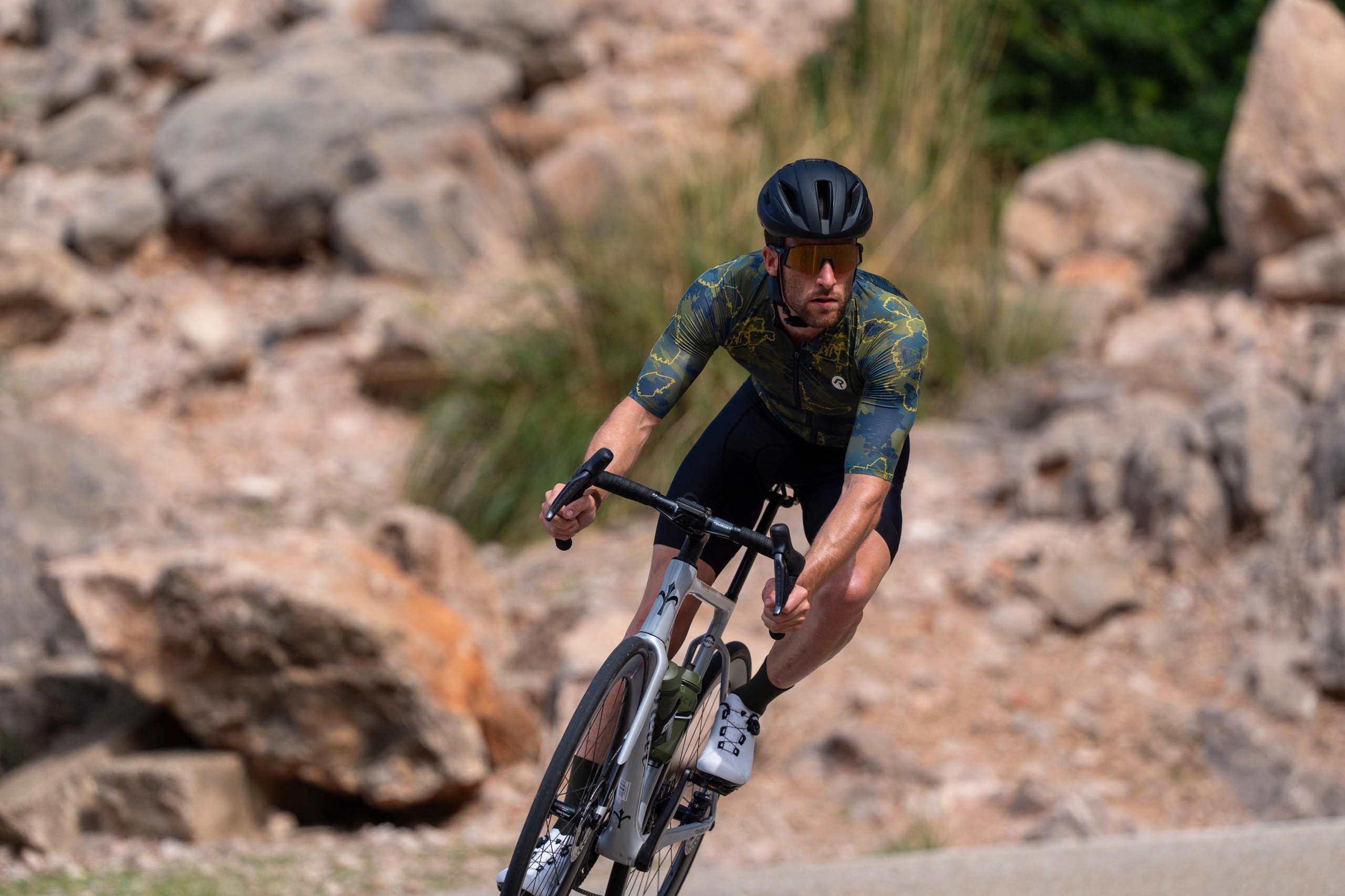 Вибирайте швидкість, комфорт і стиль. Велосипедна майка Essential II має крой Race, який ідеально прилягає до тіла. Велосипедна майка виготовлена з матеріалуEco Airlite Swiftв основній частині, що робить їїлегкою та повітряною. Рукава Eco Dynaflex збезшовною обробкою ідеально прилягають до плечей, забезпечуючи оптимальну посадку, комфорт і свободу рухів.