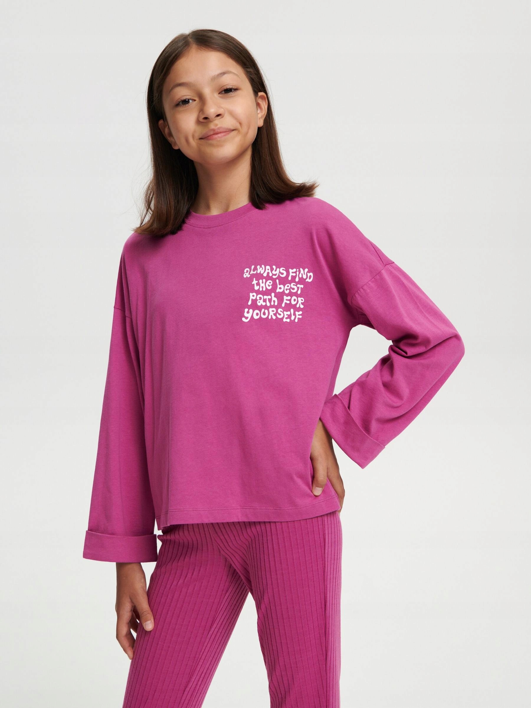 РОЖЕВА ВІЛЬНА БАВОВНОВА БЛУЗА, ПРИНТ З ДОВГИМ РУКАВОМ, ПРИНТ НА СТРУНКАХ 146