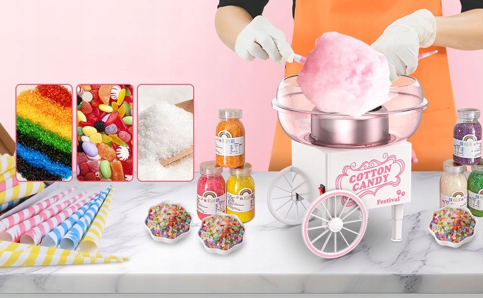 Широке використання: ситні солодощі, молочні цукерки, тверді цукерки, звичайний кришталевий цукор і навіть ваші улюблені солодощі - ви отримаєте все це зі смачними цукерками з бавовни з нашою машиною! ✨✨✨