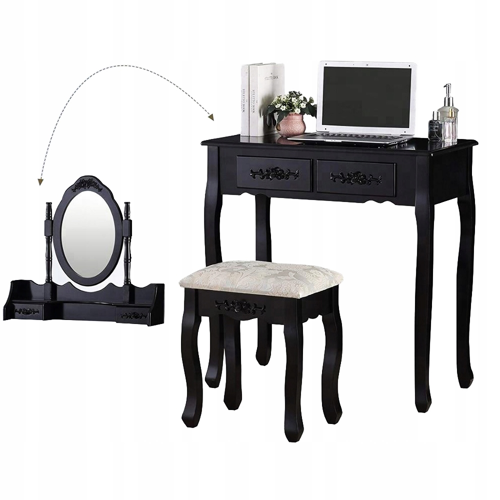 Туалетний столик має поворотне дзеркало, яке за потреби можна зняти з усієї консолі, а туалетний столик можна використовувати як стіл або стіл миттєво. p>