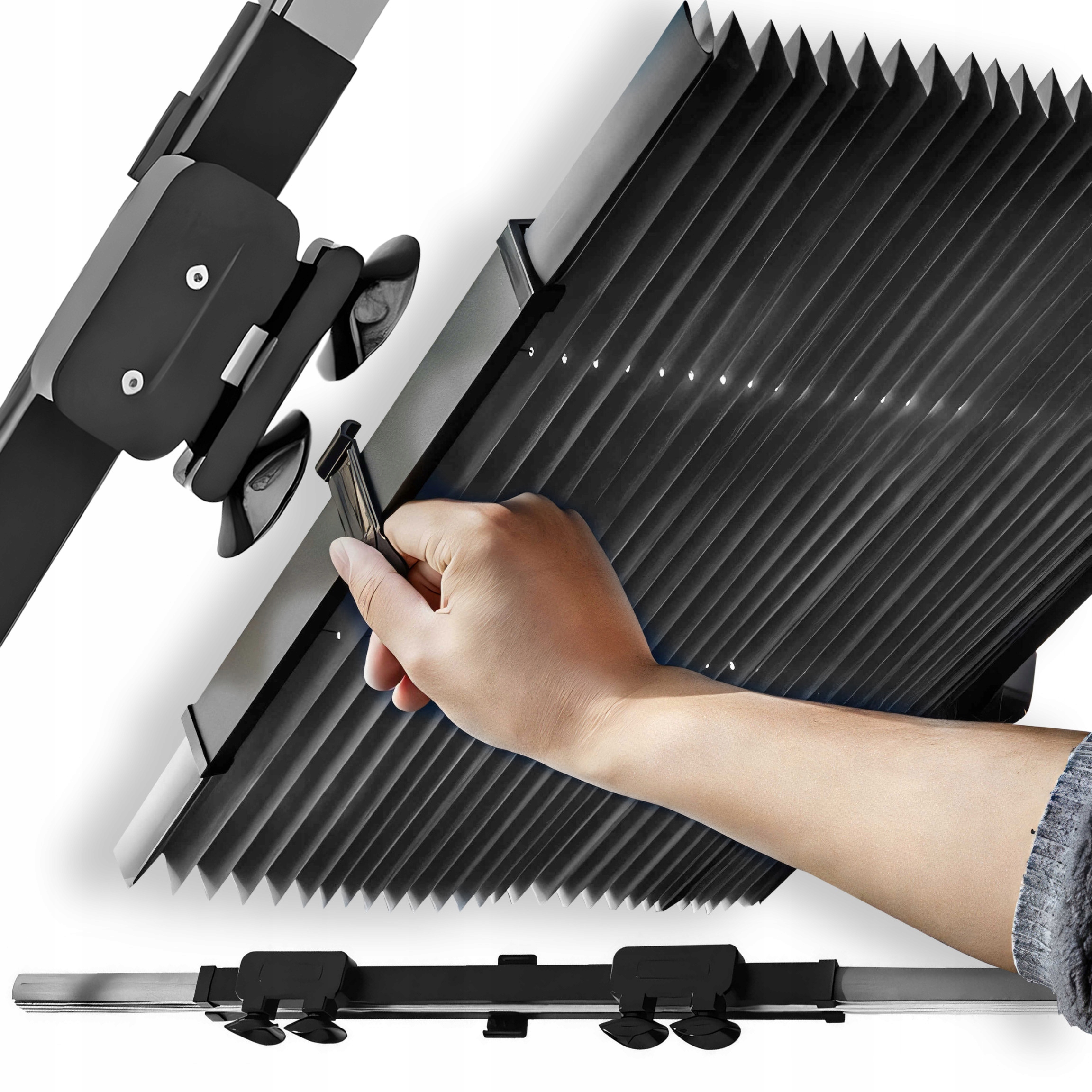 Встановлення сонцезахисної шторки на автомобіль нескладне та просте. Просто прикріпіть його до лобового скла за допомогою присосок, а потім розгорніть. Весь процес інтуїтивно зрозумілий і не потребує спеціальних інструментів. Завдяки цьому будь-який бажаючий може встановити рулонні штори в своєму автомобілі всього за кілька хвилин. Присоски гарантують стабільність кріплення, забезпечуючи тривалий захист від УФ-променів.