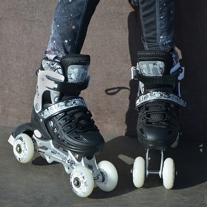 - 4 варіанти конфігурації: роликові ковзани, роликові ковзани, класичні роликові ковзани, ковзани