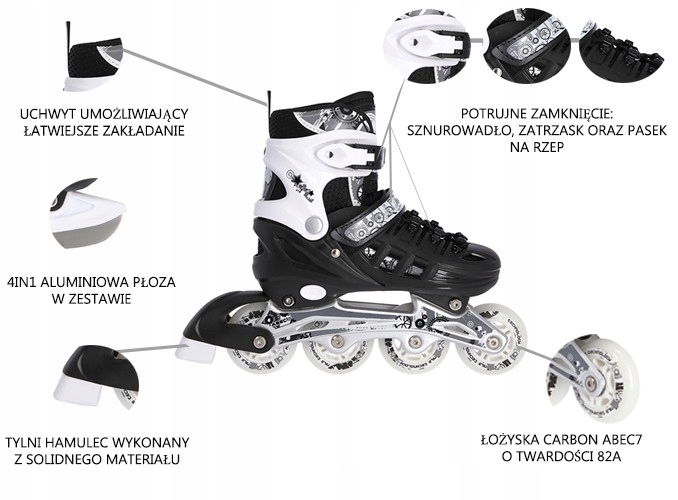 NH109 4in1 — це набір роликових, роликових і хокейних ковзанів в одному взутті. Завдяки змінним бігункам ми можемо перетворити роликові ковзани на ковзани для льоду або ролики. Регулювання розміру дозволяє взуття підходити під ногу користувача. Застібка, що складається з пряжки, липучки та шнурівки забезпечить комфорт і безпеку під час катання. NH109 виготовлені з високоякісних матеріалів, що гарантує довговічність протягом тривалого часу використання.
