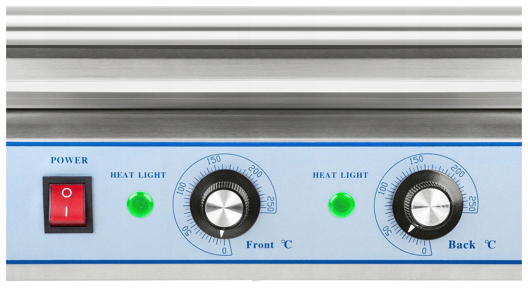 Обладнання має два незалежних термостата, перший з яких відповідає за температуру (макс. 250°C) у передніх нагрівачах, а другий - у задніх. Таким чином сосиски можна не тільки смажити на грилі, але і розігрівати. Сім роликів з нержавіючої сталі обертаються на 360 градусів.