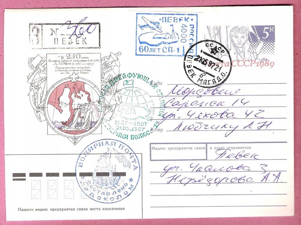 Rosja 1997 R-ka poczta eksp. polarna stacja PIEWEK
