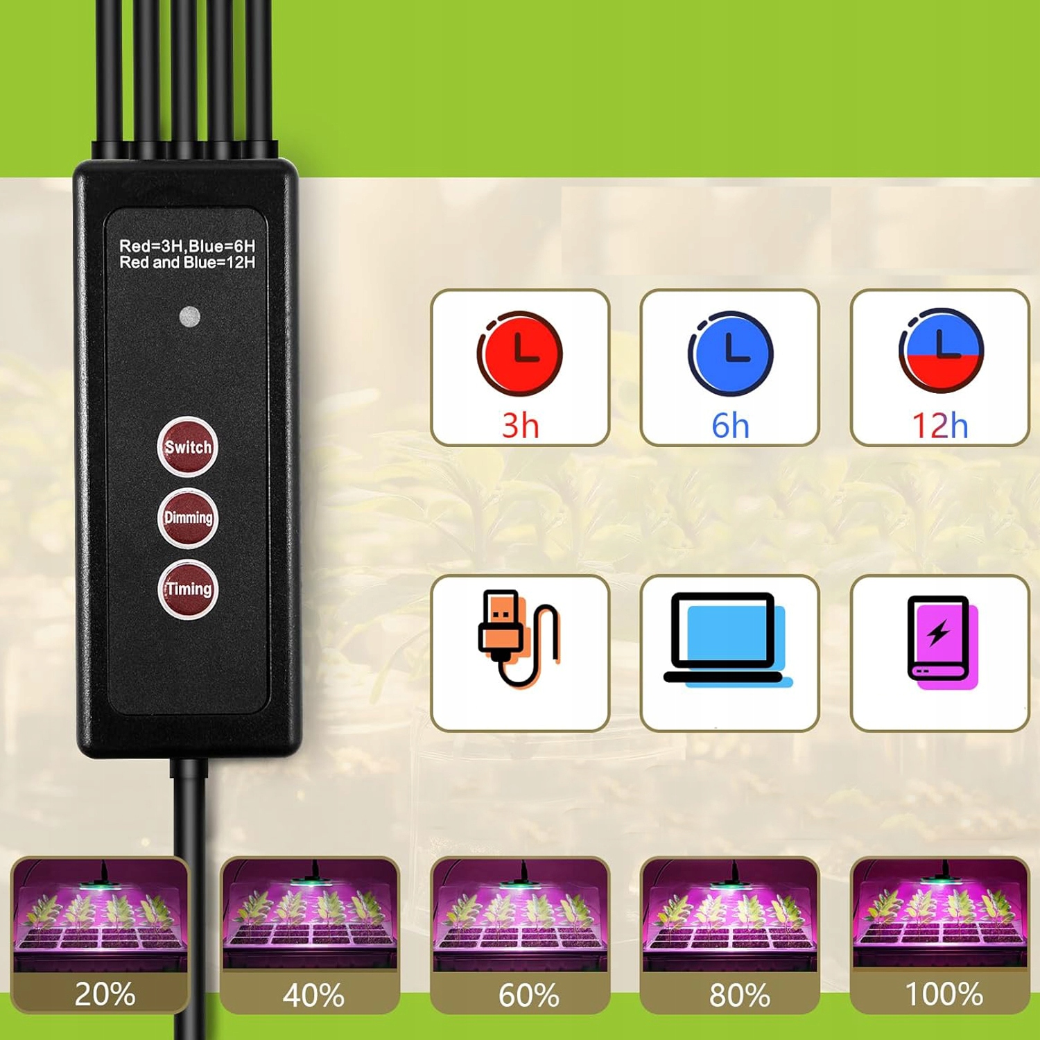 - Наші світильники для рослин підходять для пророщування/посіву/початку насіння, кімнатних рослин, рослин у горщиках, сукулентів , особливо коли рослинам потрібно більше світла під час дощу, снігу, темряви в приміщенні тощо.