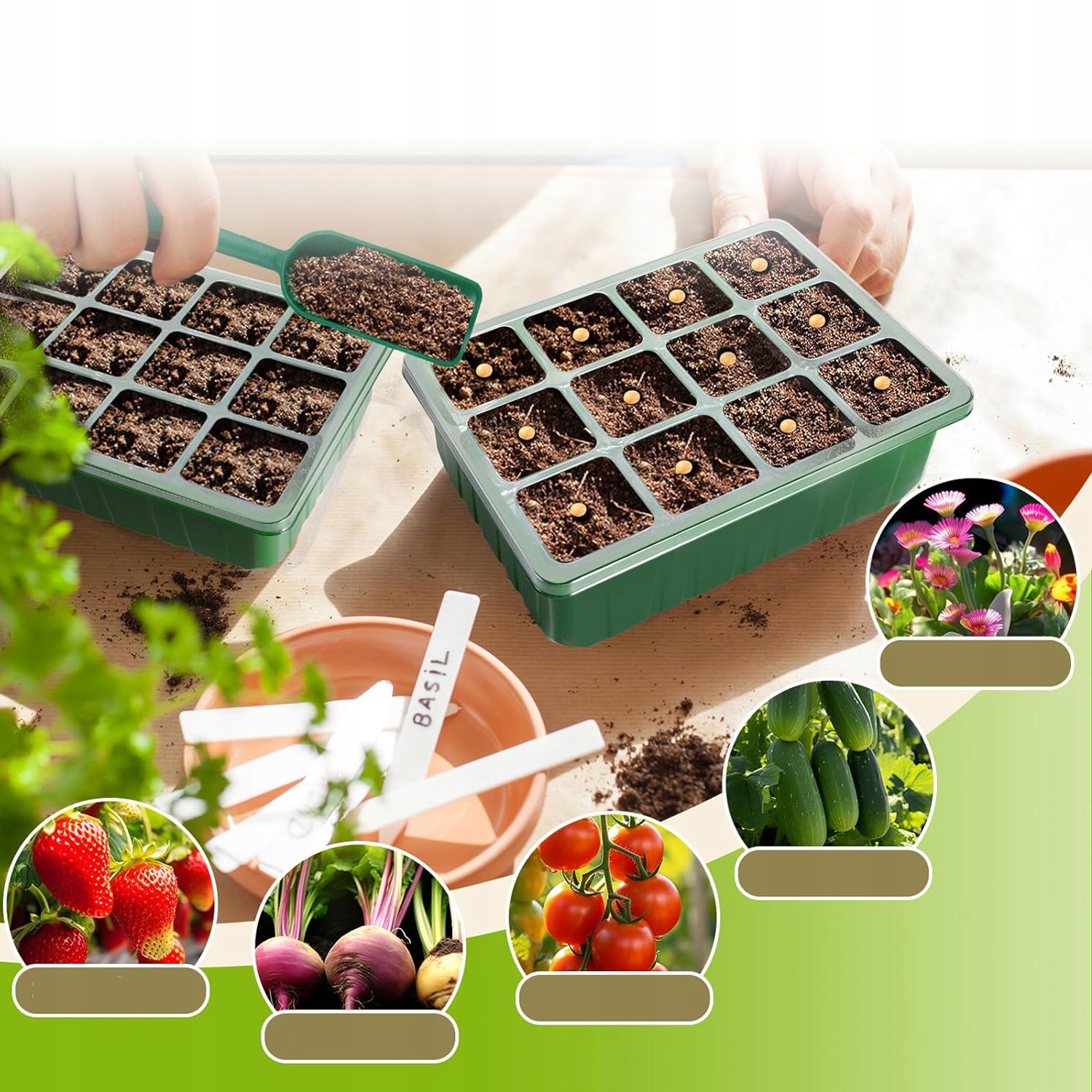 - Покращена піднята кришка забезпечує достатньо місця для росту насіння.