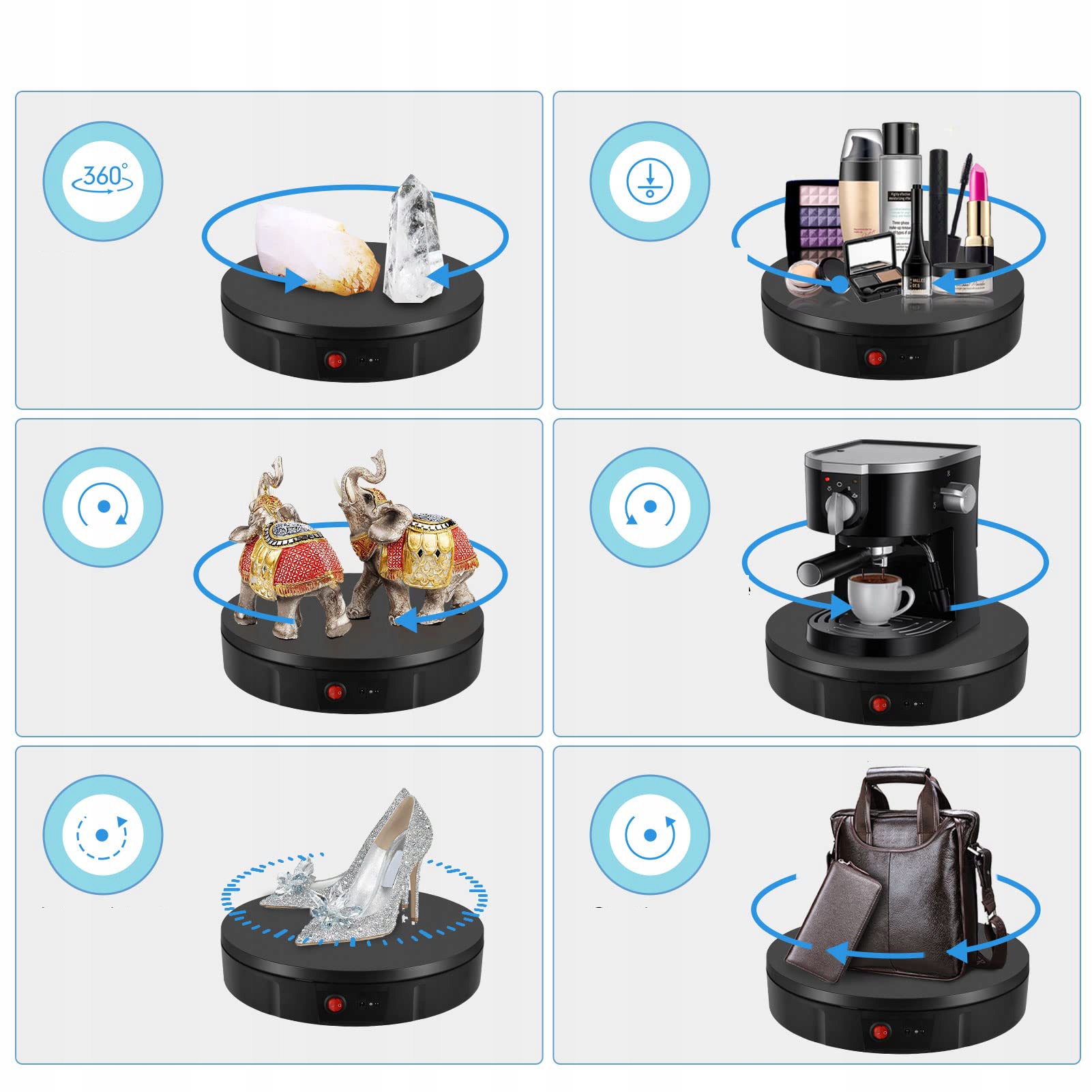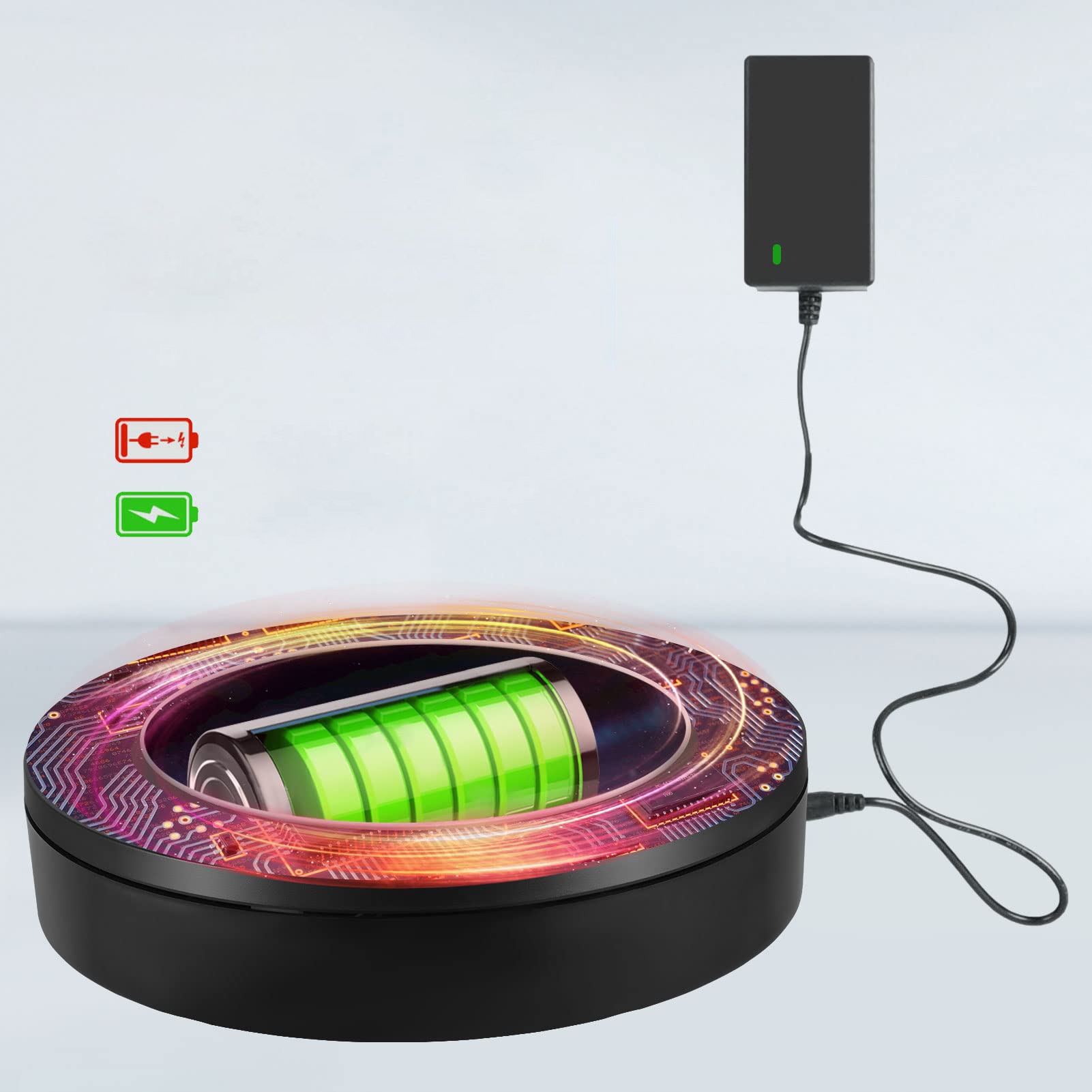 - Ця електрична поворотна таблиця забезпечує 360-градусну презентацію вашої продукції. Переривчасте. Зарядка може працювати безперервно протягом 8 годин.