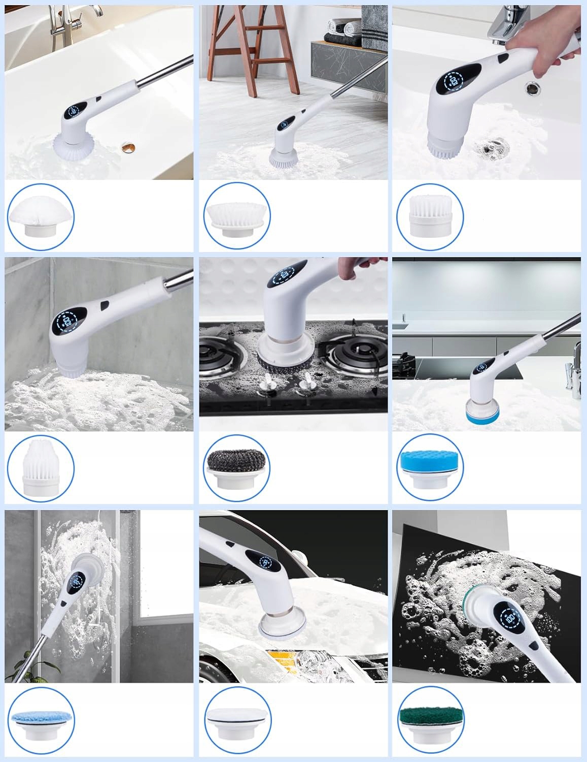 🧹БЕЗДРОТОВА ЕЛЕКТРИЧНА РОТАЦІЙНА ЩІТКА ДЛЯ ОЧИЩЕННЯ З 9 ЗМІННИМИ ГОЛОВКАМИ ЩІТКИ