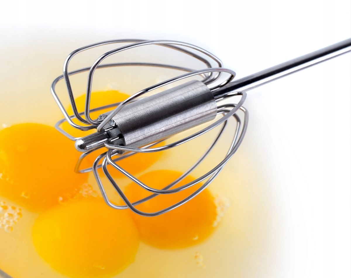 Функціональний роторний збивач, який є другом кожної господині при збиванні яєць, змішуванні яєчних білків, супів, соусів. Продукт простий у використанні, просто рухайте ручкою вгору-вниз і перемішуйте миттєво.