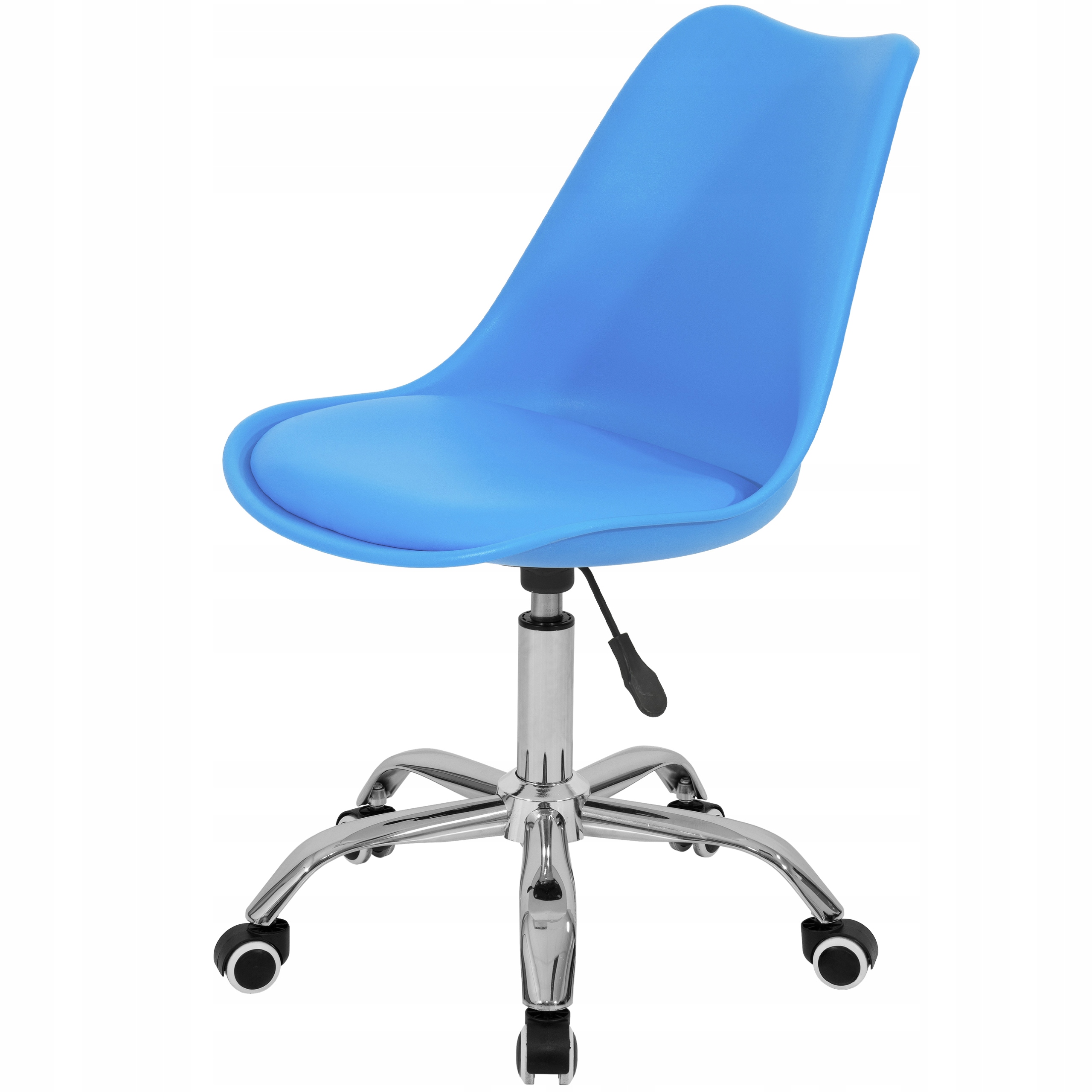 оснащена м'якою еко -подушкою, розміщеною на сидінні. Тверда, хромована основа та здатність змінити висоту стільця за допомогою газового циліндра.