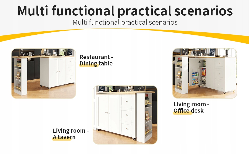 Незалежно від того, чи це кухонний острів, бар у вітальні чи сервант у їдальні, цей бар ідеально виконає своє завдання. Він не тільки підходить для сімейних зустрічей та щоденних продуктів, пов'язаних з їжею, але також може використовуватися як сайт для зберігання для створення вишуканого домашнього стилю. Гнучкий стиль дизайну означає, що його можна легко інтегрувати з різними стилями інтер'єру, такими як сучасний, північний або промисловий стиль, додавання практичного та красивого акценту до вашого будинку.