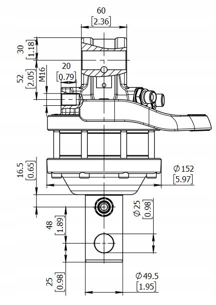 - Нижнє кріплення (аксесуари): діаметр шпильки - ø 49,5 мм, діаметр отвору - ø 25 мм