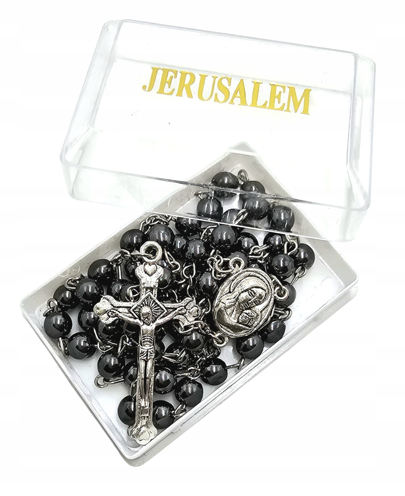Відкрийте для себе красу молитви за допомогою цього унікального сірого розарію, зробленого з гематиту. Його тонкий блиск і елегантний зовнішній вигляд роблять його ідеальним для щоденної молитви, а також як унікального подарунка. Розарій прикрашає з'єднувач зображенням Божої Матері та прекрасним хрестом, який надає йому унікального персонажа. Виготовлений з високоякісного гематиту та металу, він забезпечує довговічність та комфорт використання. Продається в практичній пластиковій коробці, захищаючи від пошкоджень. Особливості продукту: