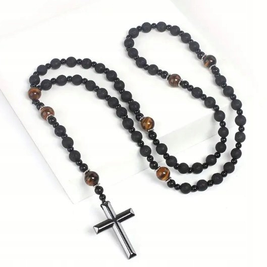 Розарій з натуральних каменів і лавового обсидіану лавового каменю тигрове око