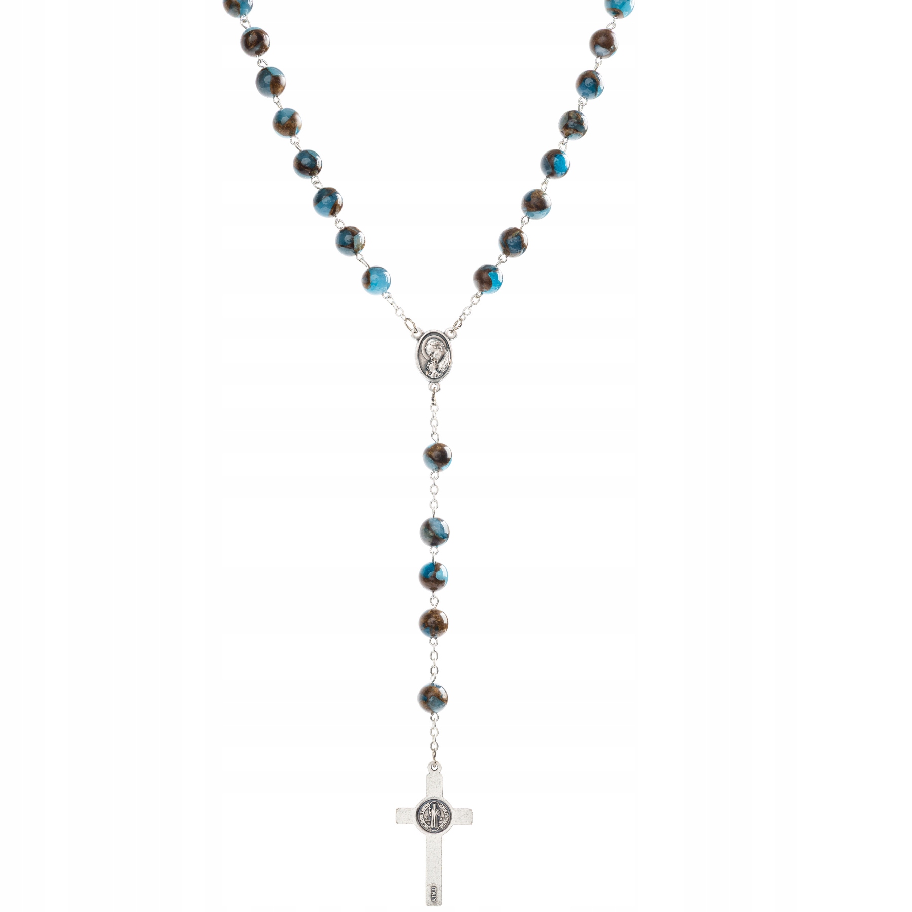 Відкрийте для себе надзвичайний розарій, виготовлений із каменю Блакитного озера — із зачаровуючими відтінками синього та коричневого, які викликають спокій водної гладі та глибину молитви. Кожен виріб унікальний, зібраний вручну в Польщі з великою увагою до деталей.