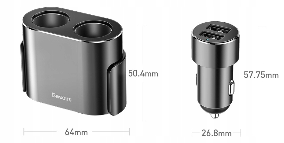 Автомобільний зарядний пристрій Baseus оснащений двома USB-портами та додатковим розгалужувачем із двома гніздами прикурювача, що дозволяє заряджати багато пристроїв одночасно. Простий і лаконічний дизайн моделі ідеально вписується в інтер'єр сучасного автомобіля. Стильний корпус виготовлений з високоміцного металу, що гарантує довговічність і зносостійкість.
