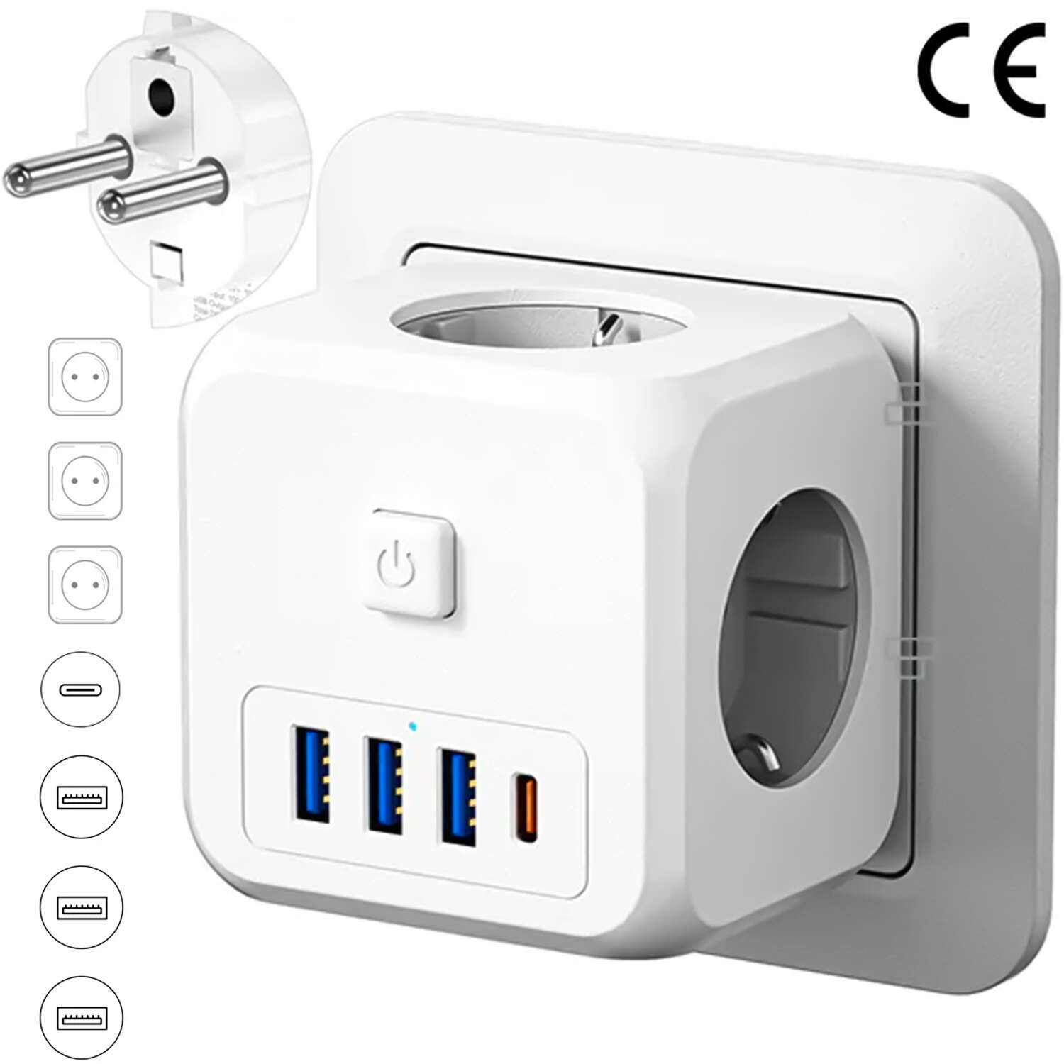 - Тип продукту: Мережевий спліттер ЄС на 3 розетки + 3x USB + 1x USB-C