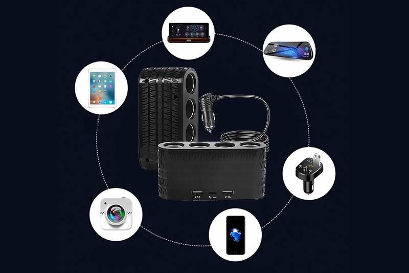 ✅ Автомобільний чотириразовий розгалужувач прикурювача з двома портами 2xUSB 2.1A + 1xUSB-C ✅