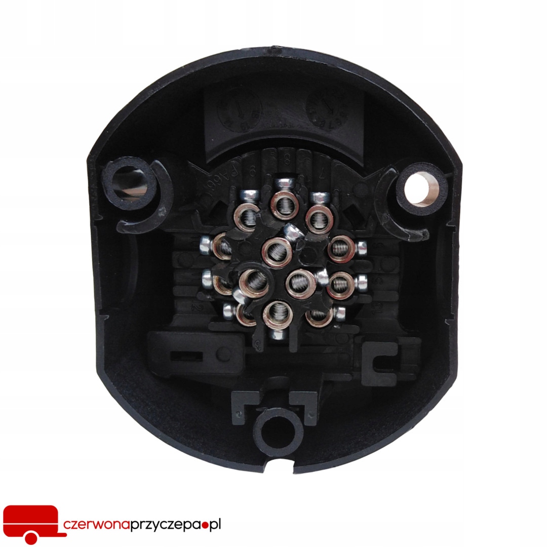 13PIN гніздо з нікельованими штифтамидля автомобільного гака, необхідного для використання ліхтарів заднього ходу (причепи з повною масою понад 750 кг, евакуатори, велоплатформи) або для підключення каравану.