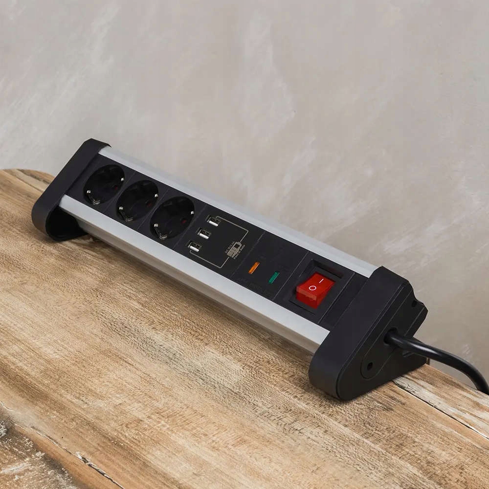 ▶️ Подовжувач 3x розетки 3x USB Настільна меблева розетка 1,5 м Зарядний пристрій