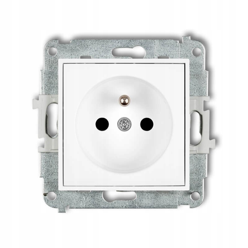Стандартна одинарна електрична розетка із заземлюючим штирем, оснащена засувками для проходу струму. Для набору потрібна рамка. Можна використовувати для систем із кількома каркасами.
