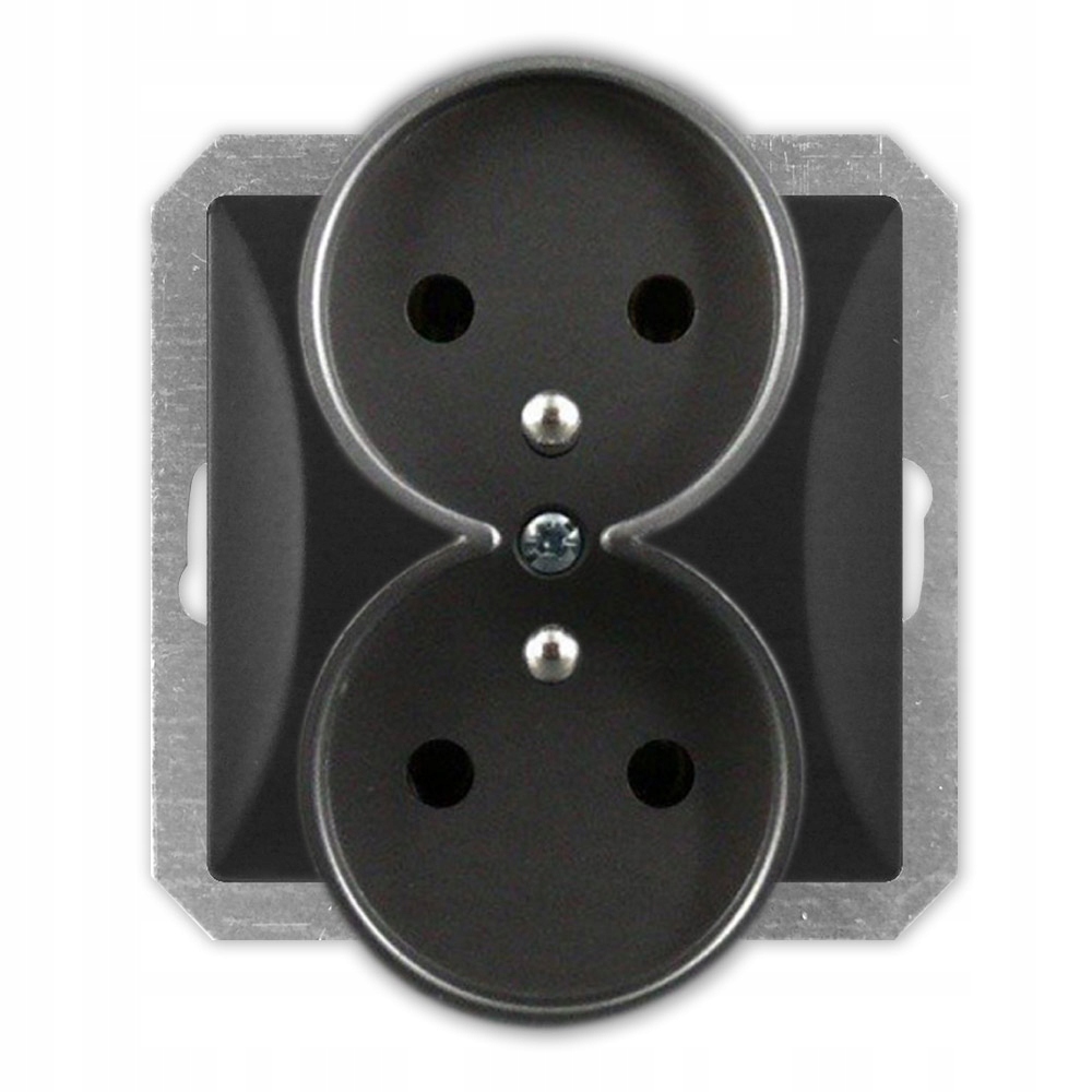ПОДВІЙНА ЕЛЕКТРИЧНА РОЗЕТКА З ЗАЗЕМЛЕННЯМ, МОДУЛЬНА ДЛЯ РАМКИ TIMEX, СЕРІЯ OPAL, КОЛІР МАТОВИЙ ЧОРНИЙ