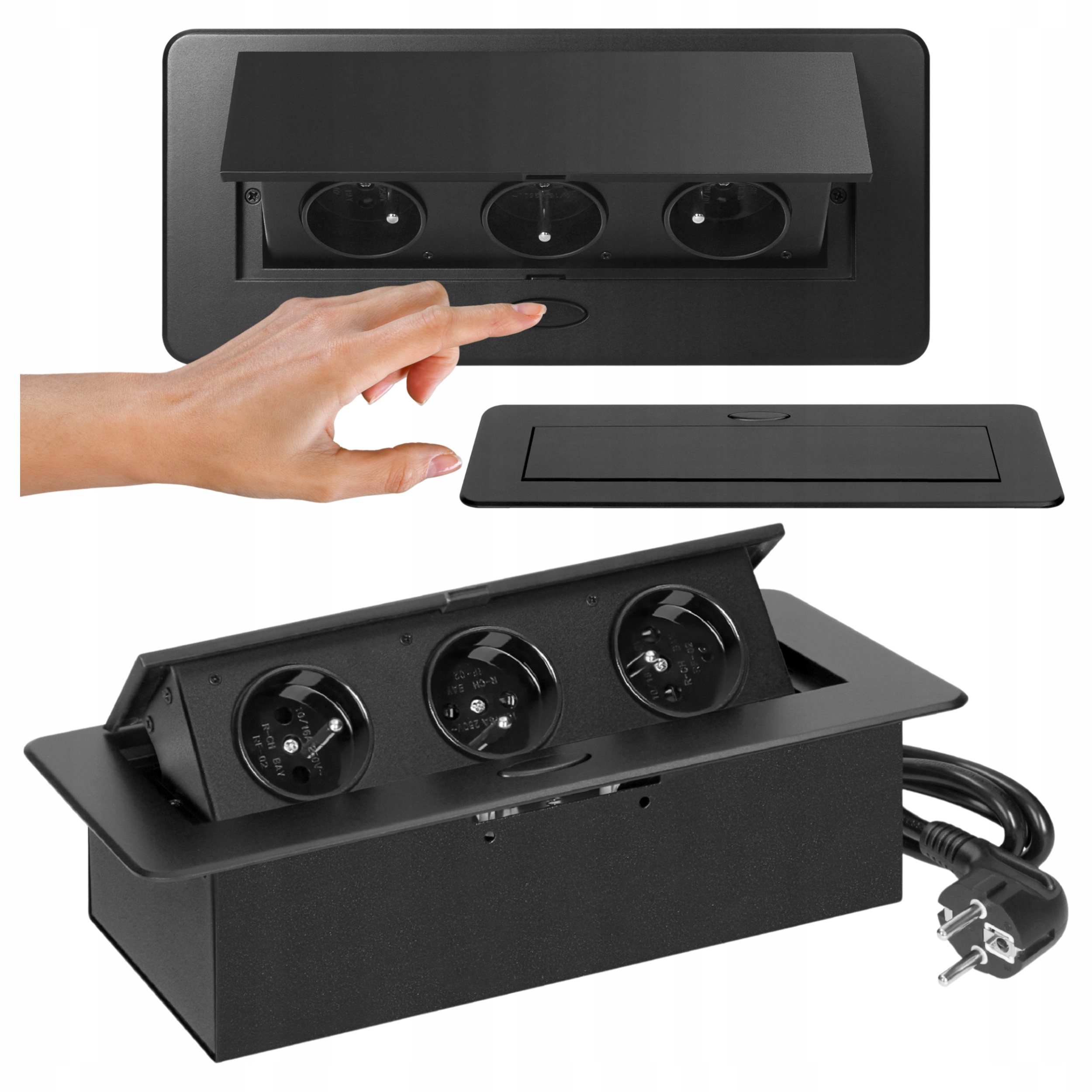 РОЗЕТКА ПОТРІЙНА ВИСУВНА В СТІЛЬНИЦЮ НАБЛАТНА РОЗЕТКА ВРІЗНА ЧОРНА 1,5М