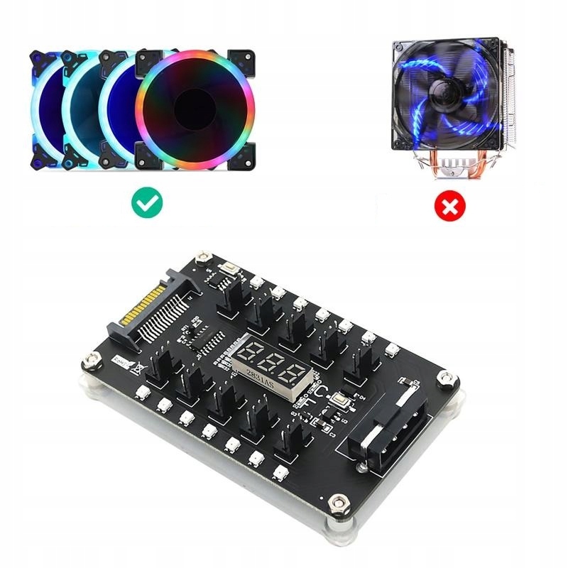 - Підтримує 10 4-контактних вентиляторів, які можуть працювати одночасно час і вирішити проблему відсутності материнської плати