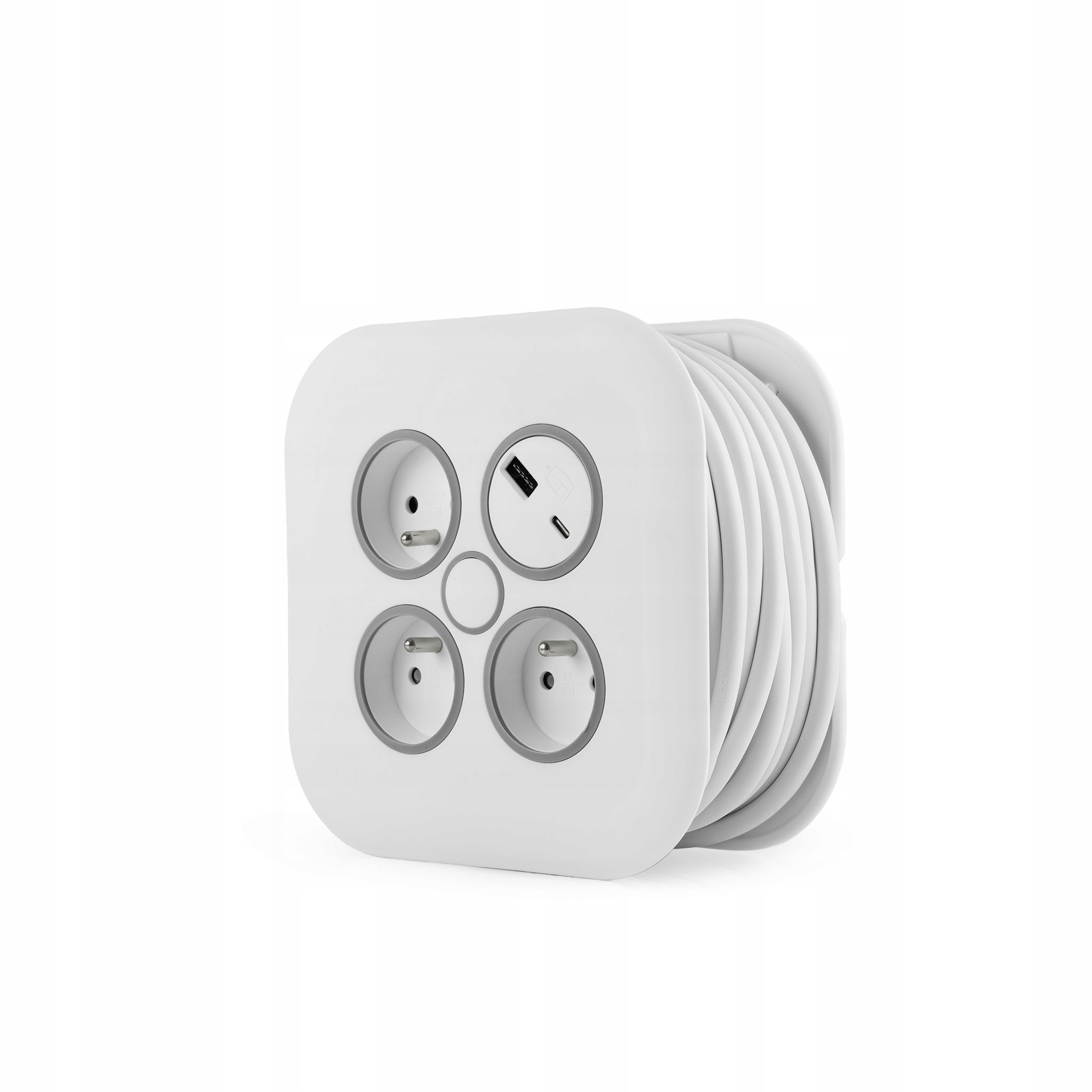 Розгорнутий подовжковий шнур 3 гніздо з заземленням 10м + 2xusba + c ip20 патч
