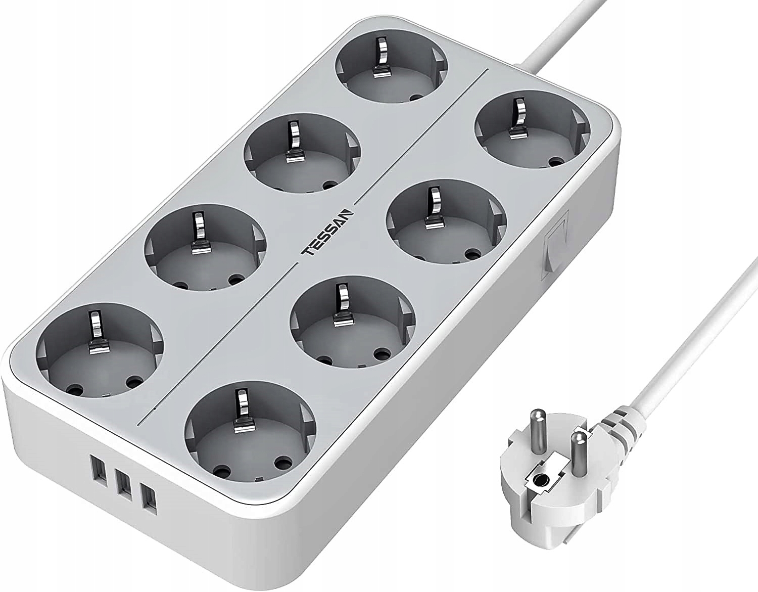 ПОДОДІВЧИК ЖИВЛЕННЯ ВІД ВІДОМОСТІ КОМПАНІЇ TESSAN ІЗ ЗАХИСТОМ ВІД ПЕРЕНАПРУГИ 8 ТРАДИЦІЙНИХ РОЗЕТОК + 3 USB-ПОРТИ