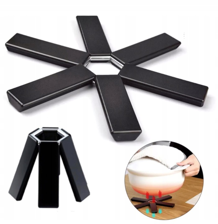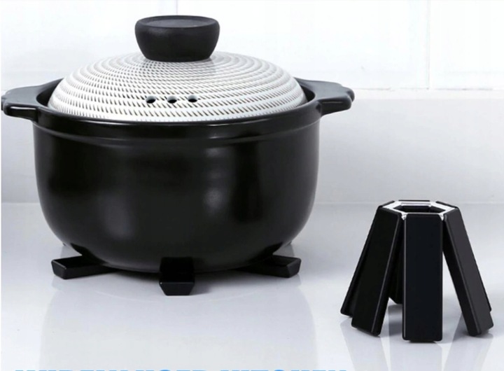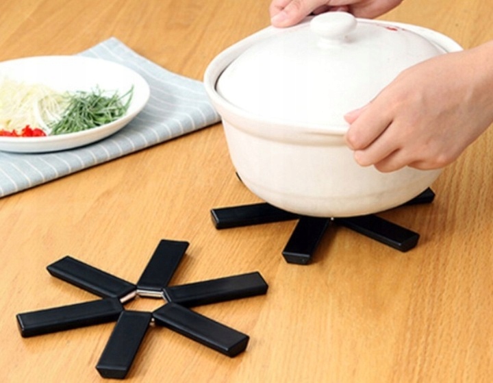 Підставка- це виріб, виконане в темних кольорах. Його проста конструкція складається лише з поздовжніх ніжок, які утворюють підставку. Це мінімалістичний кухонний аксесуар, але ми запевняємо вас, що його зовнішній вигляд і функціональність відповідатимуть вашим вимогам. Додатковою перевагою є те, що підкладка складається.