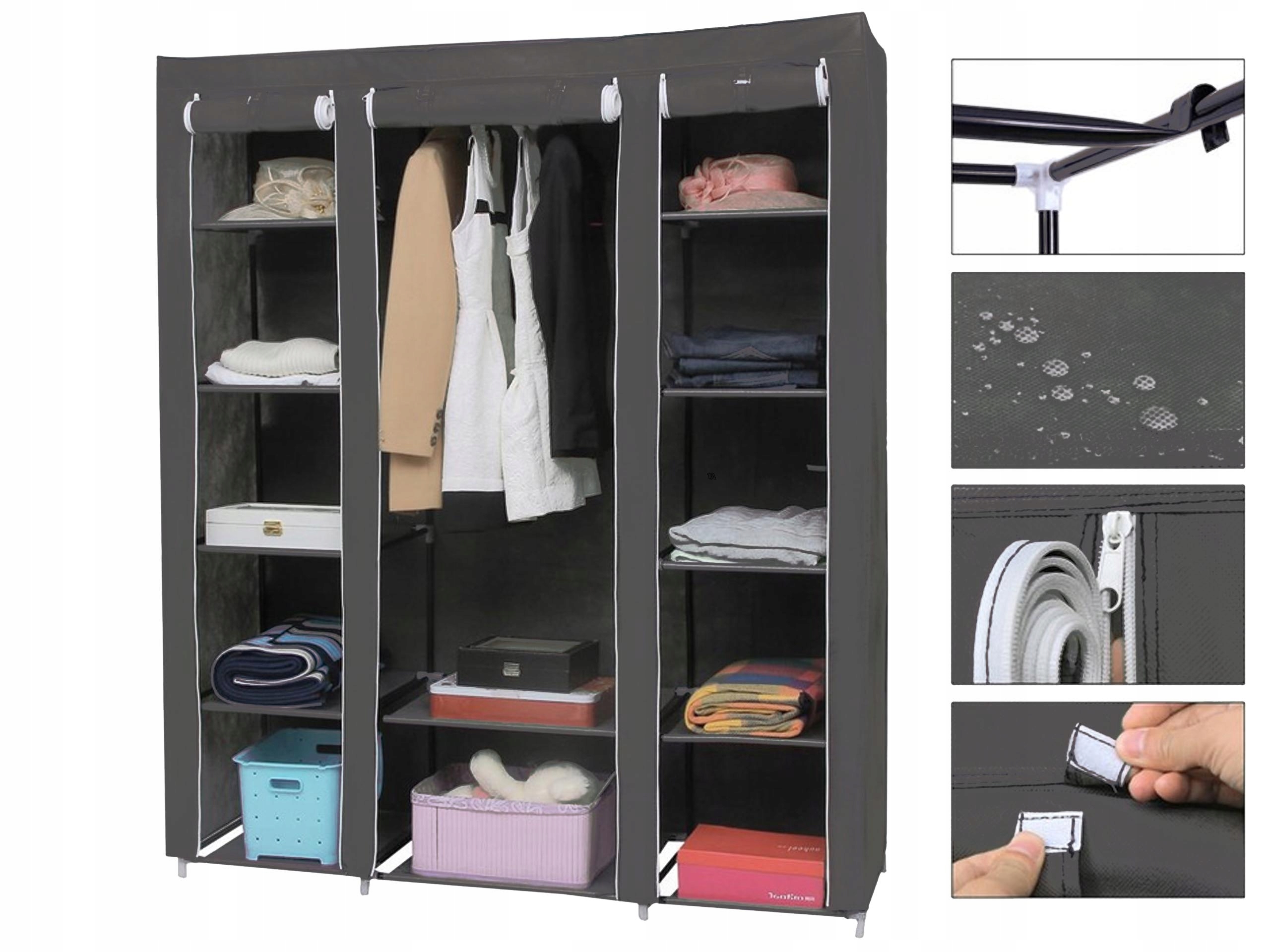 РОЗКЛАДНИЙ МАТЕРІАЛ ШАФА ТЕКСТИЛЬ ШАФА XXL 170x147x45CM ГРАФІТ